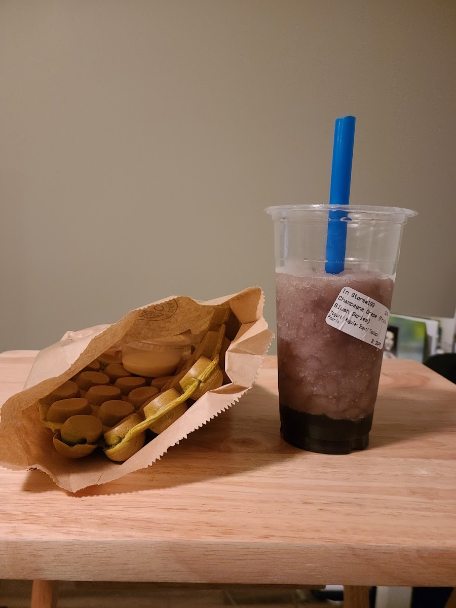 One of the standout items on their menu is the Matcha Bubble Waffle. This delicious treat combines the crispiness of a waffle with the rich, earthy flavors of matcha. It’s a perfect blend of textures, and the matcha flavor is just the right balance of creamy and bold. If you’re in the mood for something sweet and refreshing, you can’t go wrong with their Champagne Grape and Yogurt Smoothie. It’s a unique, fruity drink with a smooth texture that’s both indulgent and refreshing, making it a great option for a warm day or a pick-me-up. For those who enjoy a rich, comforting drink, the Brown Sugar Bubble Milk is a must-try. The sweetness of brown sugar perfectly complements the creamy milk, while the chewy bubbles provide a satisfying texture.